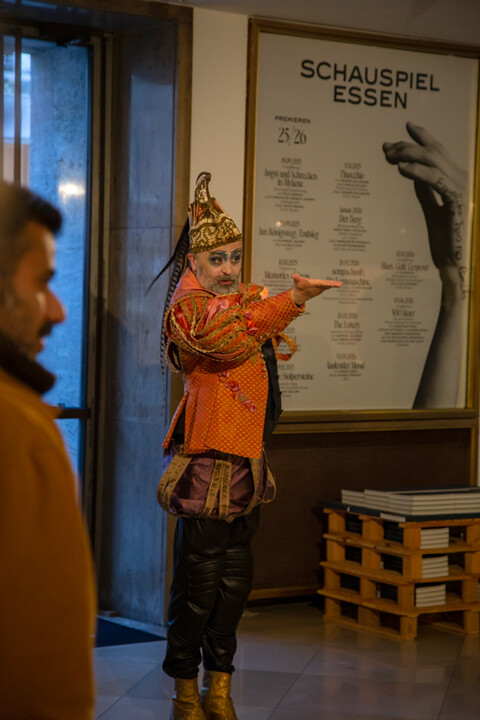 Nach einer Idee und dem Konzept von Sapir Heller entwickelt der Regisseur Dor Aloni gemeinsam mit dem Ensemble einen Mehrstationen-Weg durch Essen, der an markanten Punkten der Stadtgeschichte diese theatral vergegenwärtigt. Mit Start- und Endpunkt am Grillo-Theater geht es vorbei an Stolpersteinen zu verschiedenen Erinnerungsorten. An jeder Station erzählen und spielen Schauspieler*innen Geschichten von Menschen, die mit diesen Orten verbunden sind. Auch auf den Wegen zwischen den einzelnen Stationen werden die Teilnehmenden von Schauspieler*innen begleitet und erfahren dabei über Kopfhörer Interessantes zur Stadtgeschichte. (Ergänzende Informationen und Hinweise zum Ablauf des Rundgangs entnehmen Sie bitte dem Info-Zettel.)